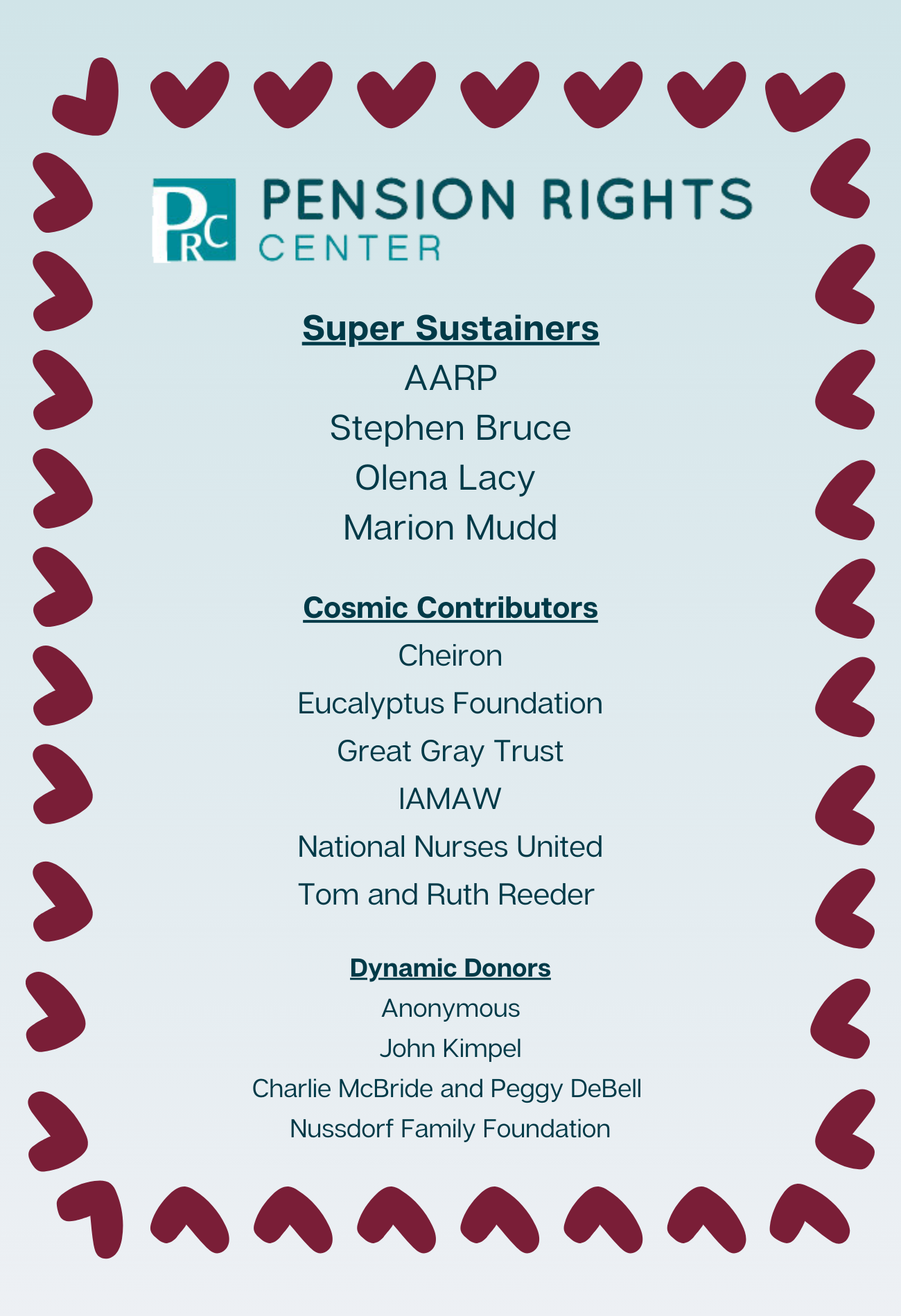 In today’s challenging pension environment, our work is more important than ever. Your contribution will help make it possible for the Center to continue its crucial role as a national consumer organization committed to protecting and promoting retirement security.